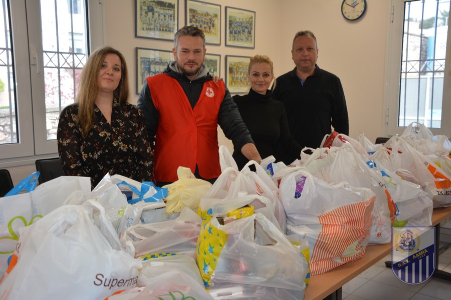 Όλοι οι ποδοσφαιριστές της ομάδας τις προηγούμενες μέρες συγκέντρωσαν τρόφιμα και είδη πρώτης ανάγκης και σήμερα παραδόθηκαν στους ανθρώπους του Ερυθρού Σταυρού από τον Διευθύνοντα Σύμβουλο της ΠΑΕ, Σάκη Τσικνή, για να διανεμηθούν στους συμπολίτες μας που τα χρειάζονται.
